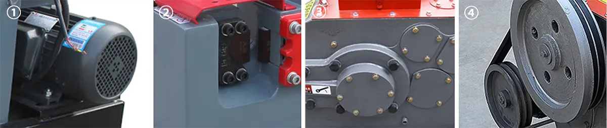3kW 32mmii Χάλυβα χαλύβδινης μηχανής κοπής της μηχανής βαρέως τύπου είναι κατασκευασμένο από χυτοσίδηρο ή ενισχυμένη δομή χάλυβα, εξοπλισμένη με ρυθμιζόμενα φωτιστικά, τα οποία μπορούν να κρατούν με ασφάλεια υλικά όπως χάλυβα φτηνών φ32mm και στρογγυλό χάλυβα, εμποδίζοντας τα ολίσθησης κατά τη λειτουργία. Από την άποψη της προστασίας της ασφάλειας, ο εξοπλισμός ενσωματώνει καλύμματα από την απόσβεση, τους διακόπτες διακοπής έκτακτης ανάγκης και τις συσκευές προστασίας υπερφόρτωσης.